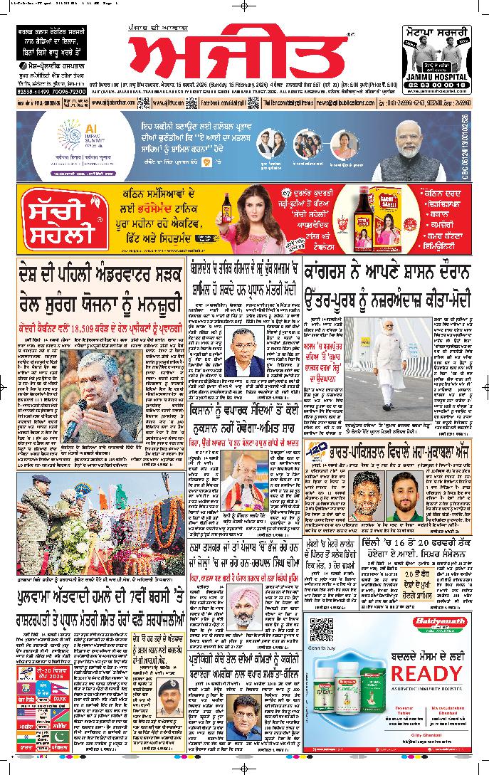 ਅਜੀਤ' ਖ਼ਬਰਾਂ, 14 ਫਰਵਰੀ 2026
