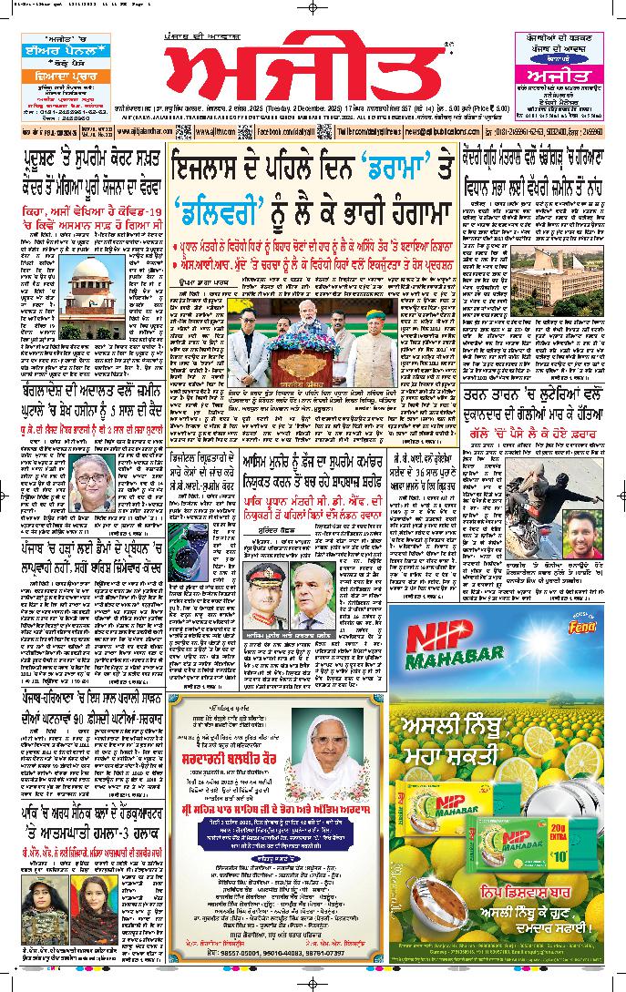 ਅਜੀਤ' ਖ਼ਬਰਾਂ, 30 ਨਵੰਬਰ 2025