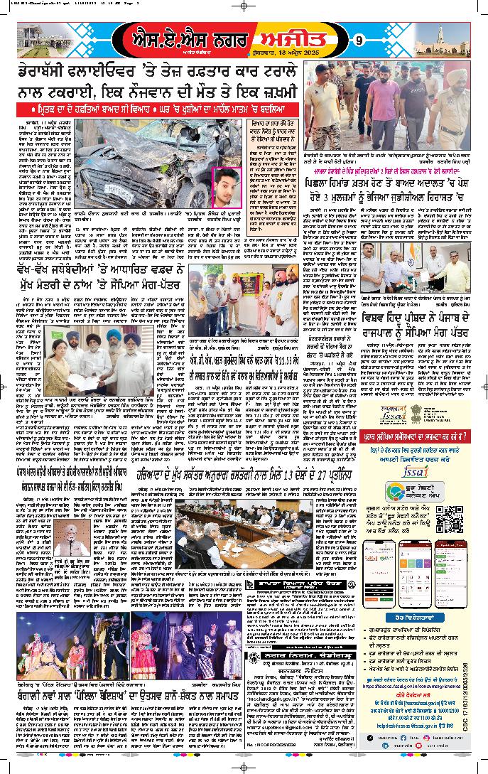 ਚੰਡੀਗੜ੍ਹ /ਸਾਹਿਬਜ਼ਾਦਾ ਅਜੀਤ ਸਿੰਘ ਨਗਰ