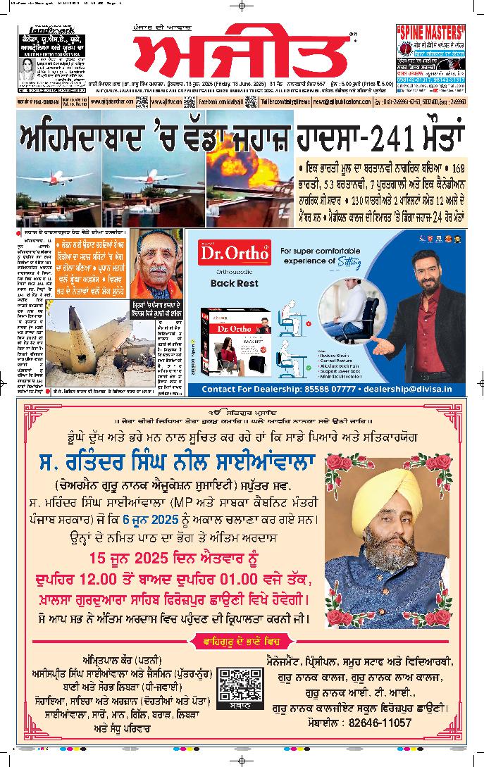 ਅਜੀਤ' ਖ਼ਬਰਾਂ, 13 ਦਸੰਬਰ 2025