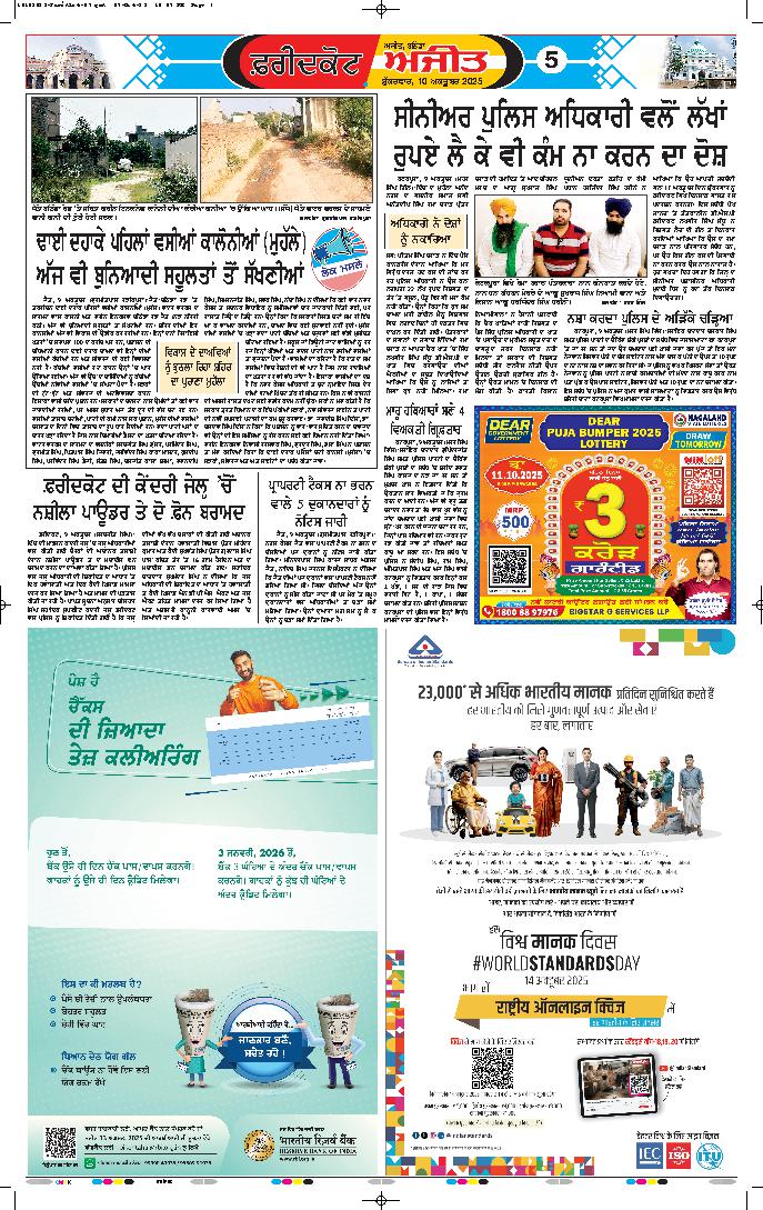 ਚੰਡੀਗੜ੍ਹ, 10 ਅਕਤੂਬਰ (ਅਜਾਇਬ ਔਜਲਾ)-15 ਅਕਤੂਬਰ ਨੂੰ ਸਮੁੱਚੇ ਦੇਸ਼ ਵਿਚ ਜ਼ਿਲ੍ਹਾ ਹੈੱਡ ਕੁਆਰਟਰਾਂ ਉਤੇ...