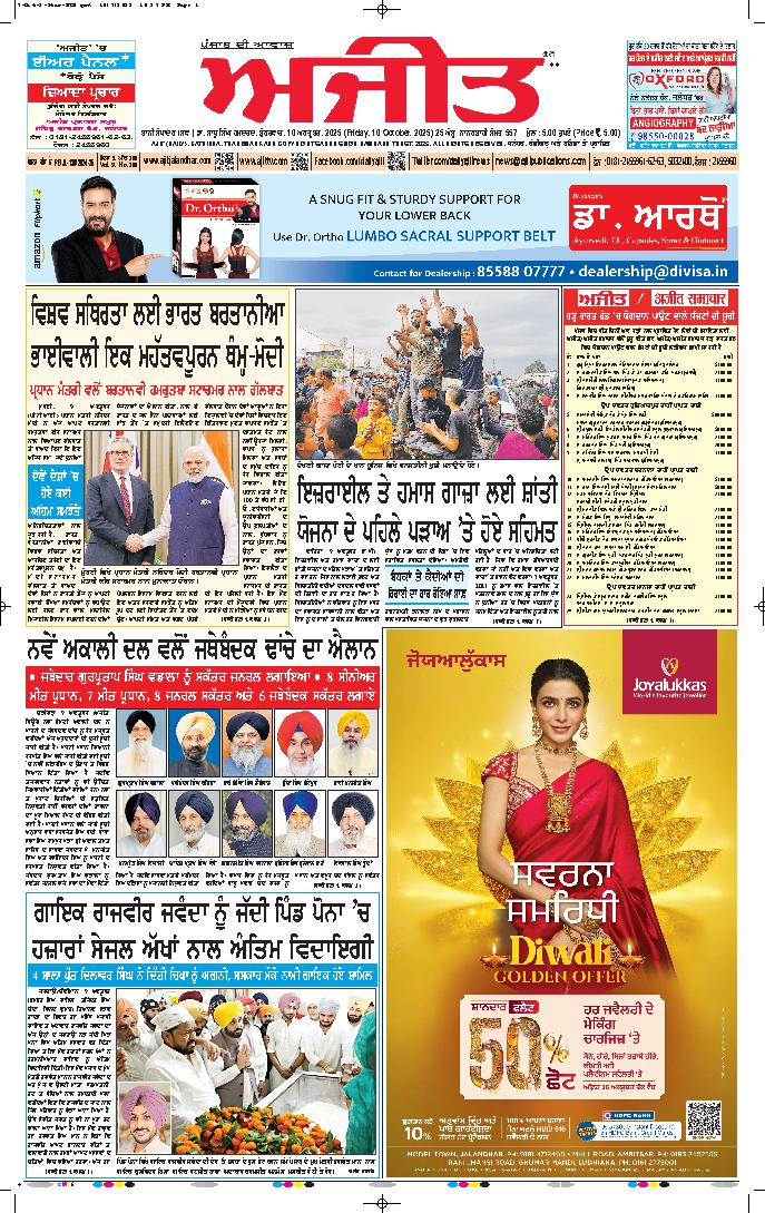 ਅਜੀਤ' ਖ਼ਬਰਾਂ, 09 ਅਕਤੂਬਰ 2025