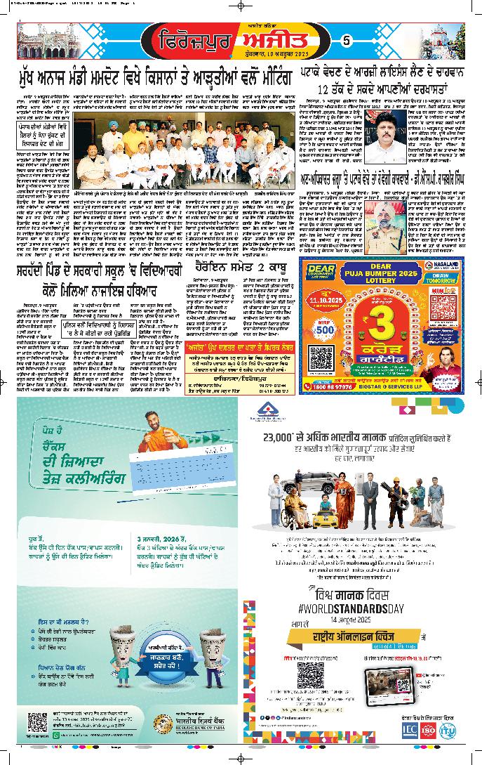 ਚੰਡੀਗੜ੍ਹ, 10 ਅਕਤੂਬਰ (ਅਜਾਇਬ ਔਜਲਾ)-15 ਅਕਤੂਬਰ ਨੂੰ ਸਮੁੱਚੇ ਦੇਸ਼ ਵਿਚ ਜ਼ਿਲ੍ਹਾ ਹੈੱਡ ਕੁਆਰਟਰਾਂ ਉਤੇ...