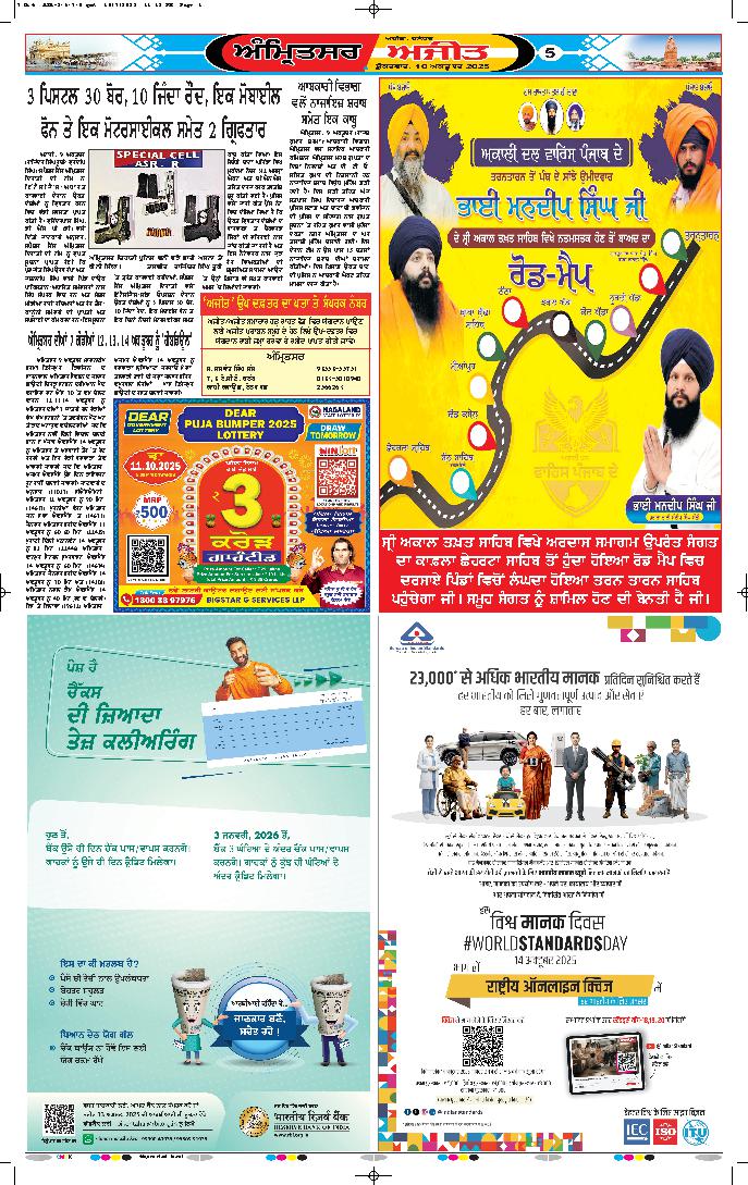ਚੰਡੀਗੜ੍ਹ, 10 ਅਕਤੂਬਰ (ਅਜਾਇਬ ਔਜਲਾ)-15 ਅਕਤੂਬਰ ਨੂੰ ਸਮੁੱਚੇ ਦੇਸ਼ ਵਿਚ ਜ਼ਿਲ੍ਹਾ ਹੈੱਡ ਕੁਆਰਟਰਾਂ ਉਤੇ...