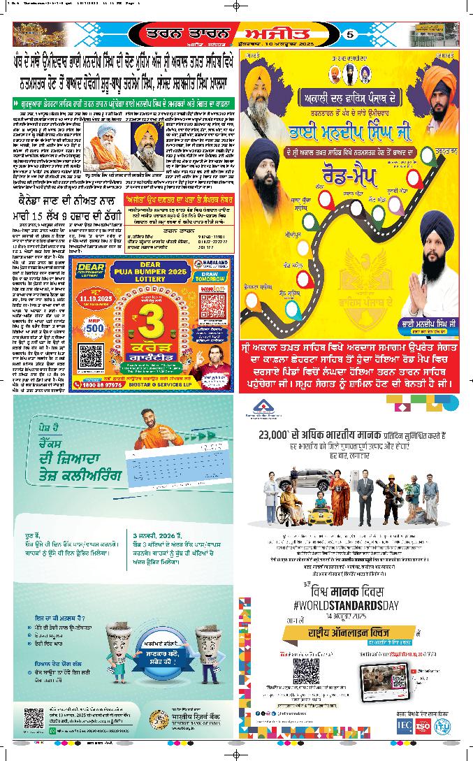 ਚੰਡੀਗੜ੍ਹ, 10 ਅਕਤੂਬਰ (ਅਜਾਇਬ ਔਜਲਾ)-15 ਅਕਤੂਬਰ ਨੂੰ ਸਮੁੱਚੇ ਦੇਸ਼ ਵਿਚ ਜ਼ਿਲ੍ਹਾ ਹੈੱਡ ਕੁਆਰਟਰਾਂ ਉਤੇ...