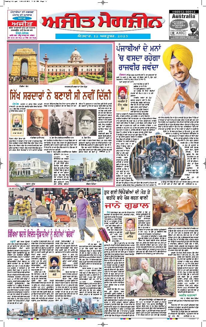 ਅਜੀਤ' ਖ਼ਬਰਾਂ, 12 ਅਕਤੂਬਰ 2025