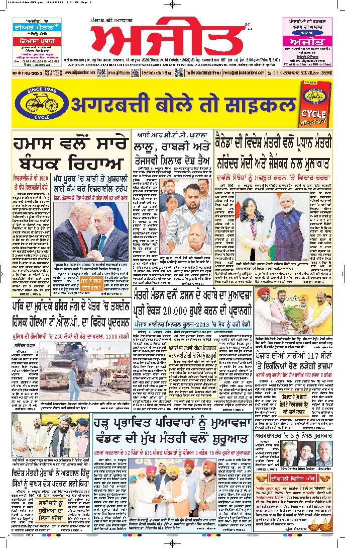 ਅਜੀਤ' ਖ਼ਬਰਾਂ, 13 ਅਕਤੂਬਰ 2025