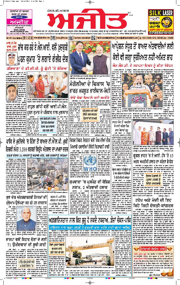ਅਜੀਤ' ਖ਼ਬਰਾਂ, 14 ਅਕਤੂਬਰ 2025
