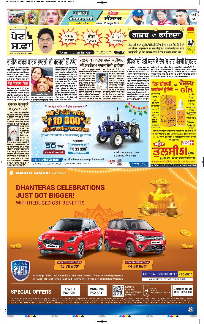 ਨਵੀਂ ਦਿੱਲੀ, 16 ਅਕਤੂਬਰ- ਜੂਨ ਵਿਚ ਅਹਿਮਦਾਬਾਦ ਵਿਖੇ ਹੋਏ ਹਾਦਸੇ ਵਿਚ ਏਅਰ ਇੰਡੀਆ ਦੇ ਪਾਇਲਟ-ਇਨ-ਕਮਾਂਡ ਮਰਹੂਮ ਕੈਪਟਨ ਸੁਮੀਤ ਸੱਭਰਵਾਲ ਦੇ ਪਿਤਾ ਨੇ ਸੁਪਰੀਮ ਕੋਰਟ ਦਾ....
