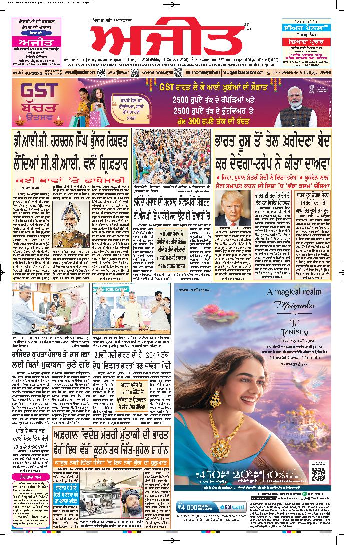 ਅਜੀਤ' ਖ਼ਬਰਾਂ, 17 ਅਕਤੂਬਰ 2025