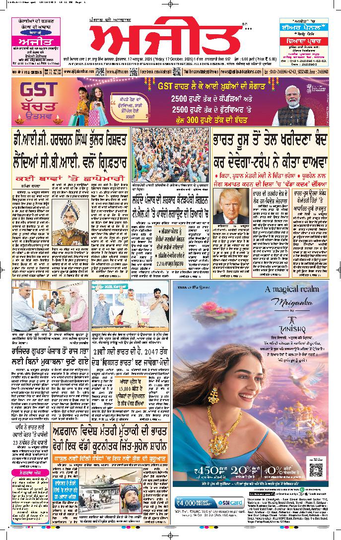 ਅਜੀਤ' ਖ਼ਬਰਾਂ, 17 ਅਕਤੂਬਰ 2025