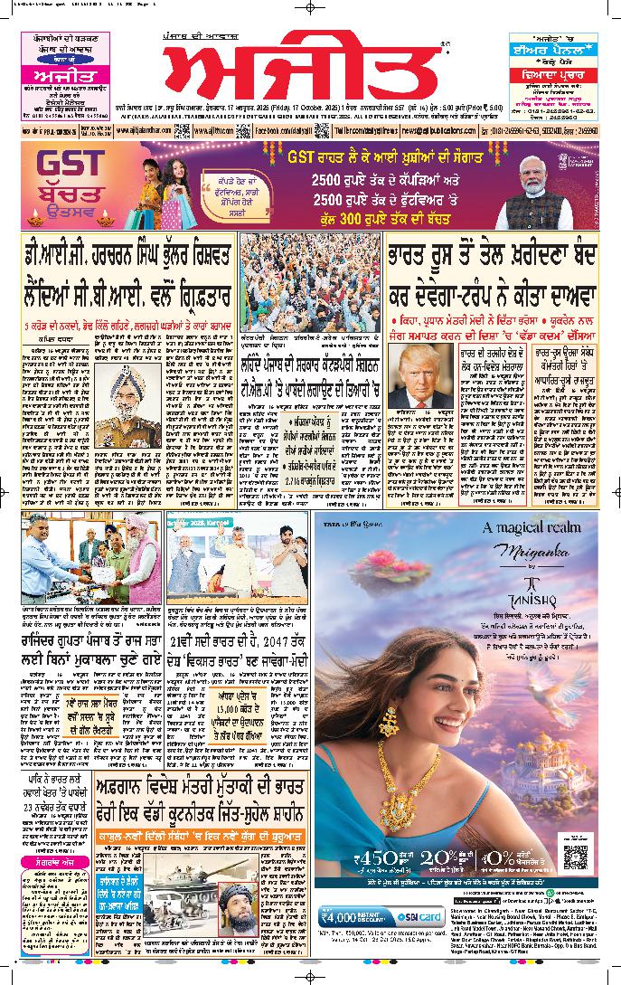 ਅਜੀਤ' ਖ਼ਬਰਾਂ, 17 ਅਕਤੂਬਰ 2025