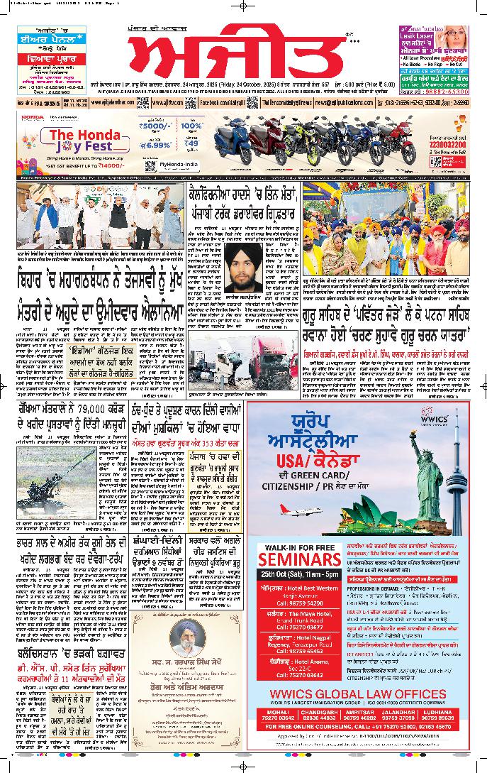 ਅਜੀਤ' ਖ਼ਬਰਾਂ, 24 ਅਕਤੂਬਰ 2025