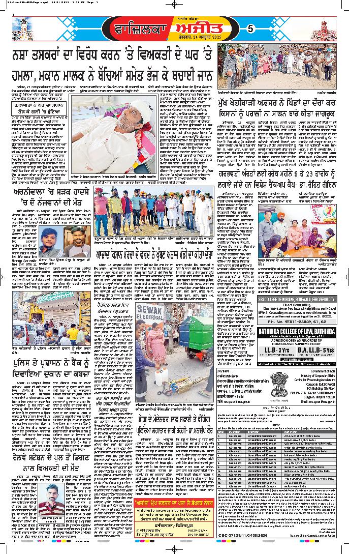 ਜਲੰਧਰ, 25 ਅਕਤੂਬਰ- ਜਲੰਧਰ ਵਿਚ ਪੁਲਿਸ ਲਗਾਤਾਰ ਨਸ਼ਾ ਤਸਕਰਾਂ ਵਿਰੁੱਧ ਸਖ਼ਤ ਕਾਰਵਾਈ ਕਰ ਰਹੀ ਹੈ। ਅੱਜ ਨਗਰ ਨਿਗਮ ਅਤੇ ਪੁਲਿਸ ਦੀ ਅਗਵਾਈ ਵਾਲੀ ਇਕ ਟੀਮ ਨੇ ਇਕ ਤਸਕਰ....