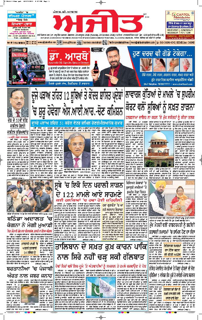 ਅਜੀਤ' ਖ਼ਬਰਾਂ, 27 ਅਕਤੂਬਰ 2025
