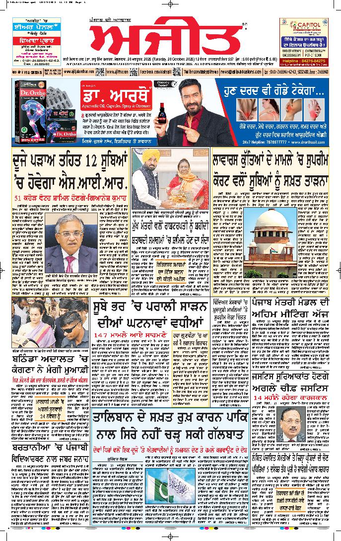 ਅਜੀਤ' ਖ਼ਬਰਾਂ, 27 ਅਕਤੂਬਰ 2025