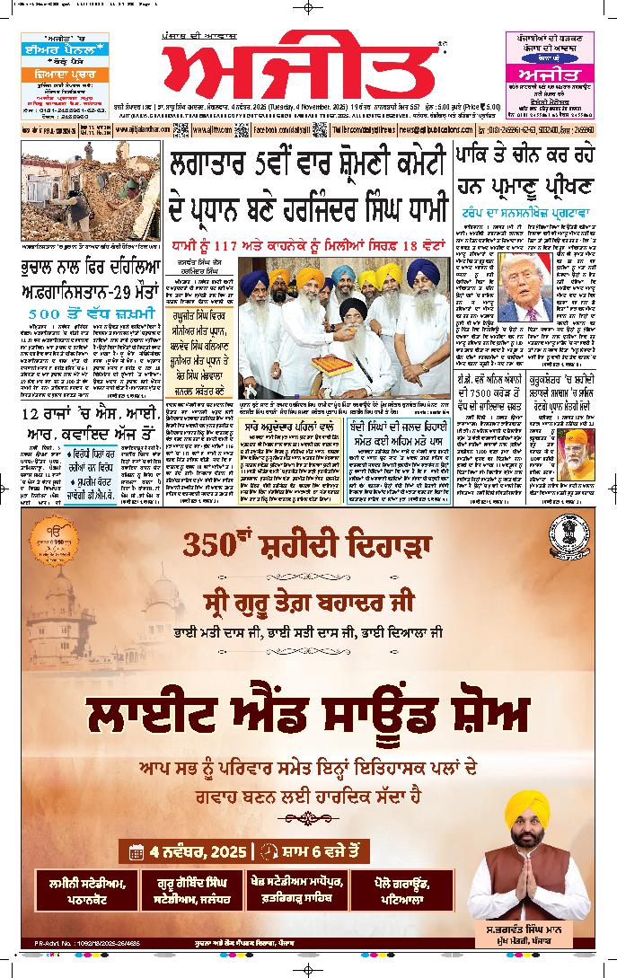 ਅਜੀਤ' ਖ਼ਬਰਾਂ, 06 ਦਸੰਬਰ 2025