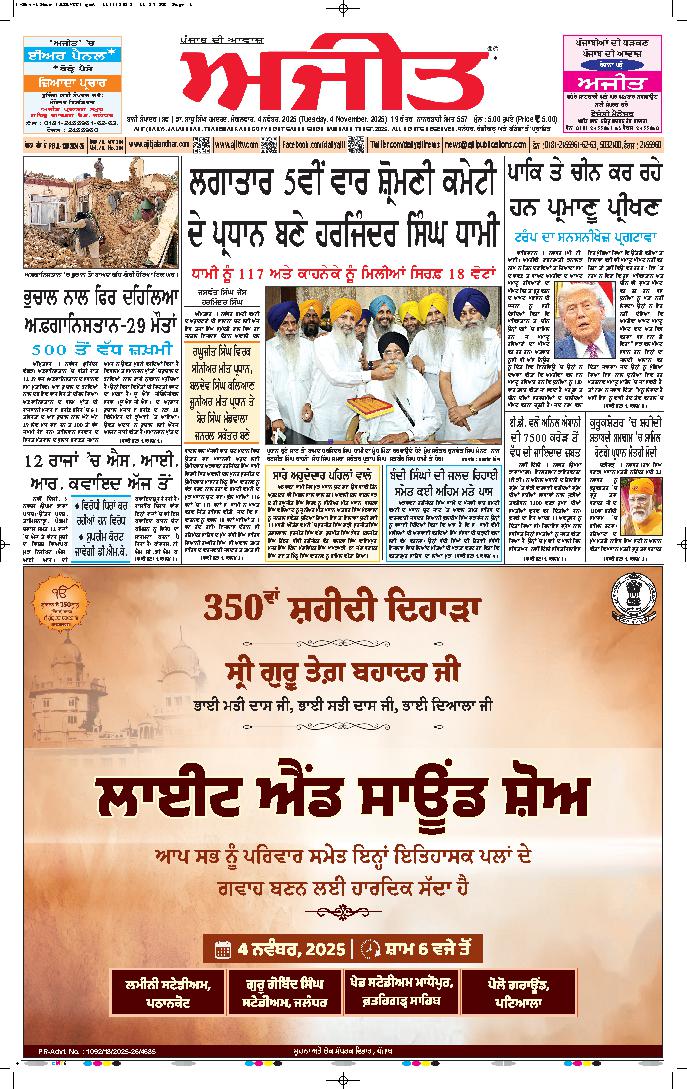 ਅਜੀਤ' ਖ਼ਬਰਾਂ, 15 ਨਵੰਬਰ 2025