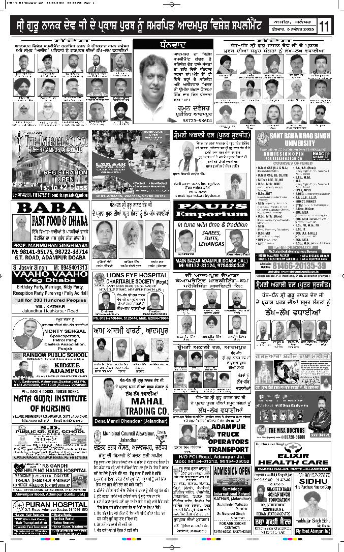 ਗੁਰੂ ਹਰ ਸਹਾਏ, 5 ਨਵੰਬਰ (ਕਪਿਲ ਕੰਧਾਰੀ)-ਪਹਿਲੀ ਪਾਤਸ਼ਾਹੀ ਸ੍ਰੀ ਗੁਰੂ ਨਾਨਕ ਦੇਵ ਜੀ ਦਾ ਪ੍ਰਕਾਸ਼ ਪੁਰਬ ਸ਼ਹਿਰ ਦੇ ਗੁਰਦੁਆਰਾ ਸਿੱਖ...