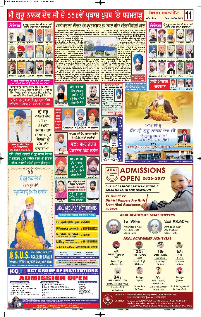 ਸ੍ਰੀ ਗੁਰੂ ਨਾਨਕ ਦੇਵ ਜੀ ਦੇ ਪ੍ਰਕਾਸ਼ ਦਿਵਸ ਤੇ ਵਿਸ਼ੇਸ਼