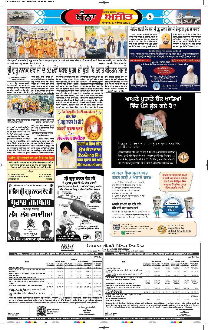 ਸ਼ਰਧਾ ਭਾਵਨਾ ਨਾਲ ਮਨਾਇਆ ਸ੍ਰੀ ਗੁਰੂ ਨਾਨਕ ਦੇਵ ਜੀ ਦਾ 556ਵਾਂ ਪ੍ਰਕਾਸ਼ ਪੁਰਬ