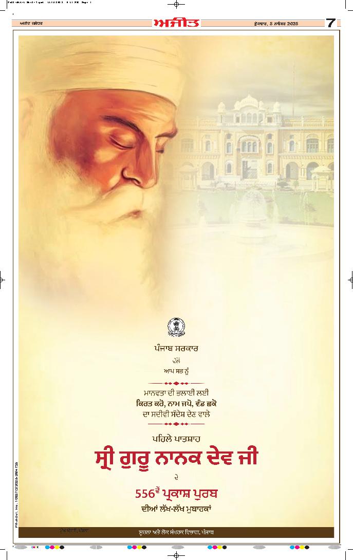 ਸ੍ਰੀ ਗੁਰੂ ਨਾਨਕ ਦੇਵ ਜੀ ਦੇ ਪ੍ਰਕਾਸ਼ ਦਿਵਸ ਤੇ ਵਿਸ਼ੇਸ਼