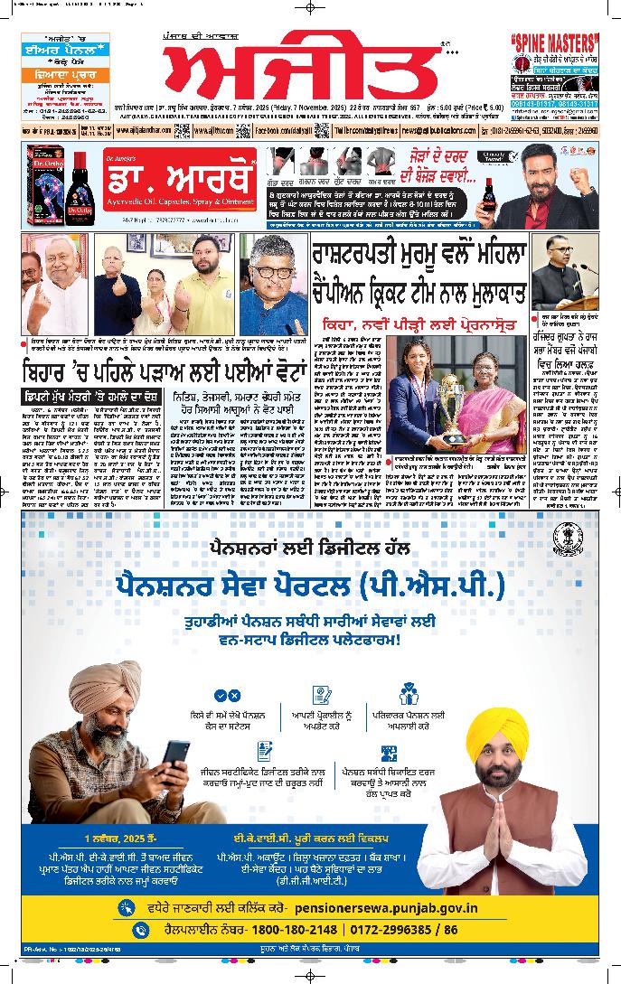 ਅਜੀਤ' ਖ਼ਬਰਾਂ, 7 ਅਕਤੂਬਰ 2025