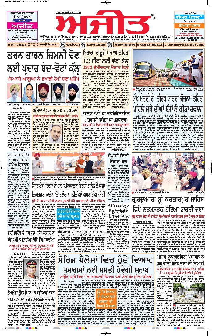ਅਜੀਤ' ਖ਼ਬਰਾਂ, 9 ਅਕਤੂਬਰ 2025