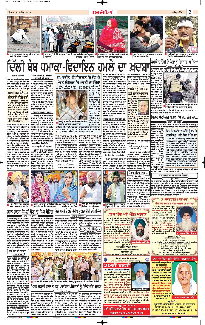 ਨਵੀਂ ਦਿੱਲੀ , 12 ਨਵੰਬਰ - ਰਾਜਧਾਨੀ ਦਿੱਲੀ ਦੇ ਲਾਲ ਕਿਲ੍ਹਾ ਮੈਟਰੋ ਸਟੇਸ਼ਨ ਨੇੜੇ ਸੋਮਵਾਰ ਸ਼ਾਮ ਨੂੰ ਹੋਏ ਕਾਰ ਧਮਾਕੇ ਦੀ ਜਾਂਚ ਤੇਜ਼ ਹੋ ਗਈ ਹੈ। ਪੁਲਿਸ ਹੁਣ ਲਾਲ ਫੋਰਡ ਕਾਰ ਦੀ ਭਾਲ ਕਰ ਰਹੀ ਹੈ। ਦਿੱਲੀ ਪੁਲਿਸ ...