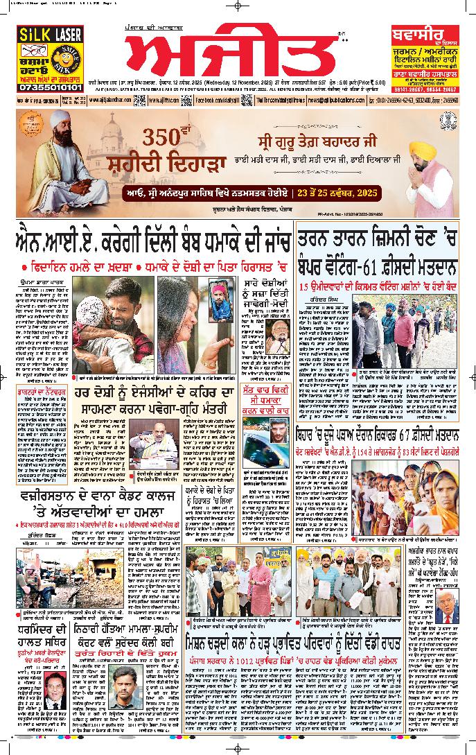 ਅਜੀਤ' ਖ਼ਬਰਾਂ, 11 ਨਵੰਬਰ 2025