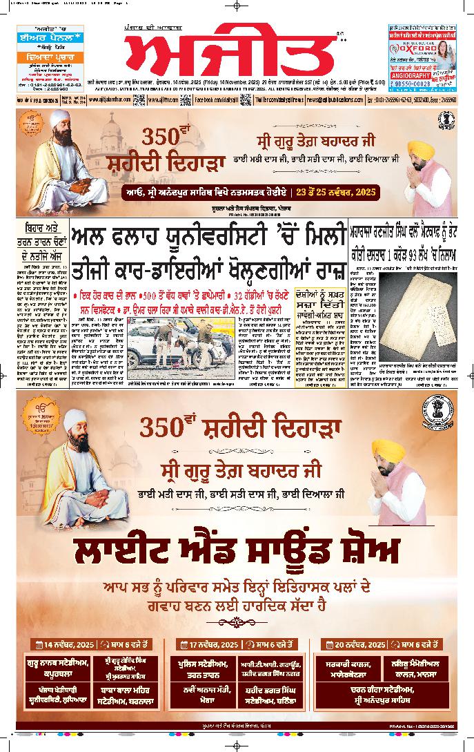ਅਜੀਤ' ਖ਼ਬਰਾਂ, 13 ਨਵੰਬਰ 2025
