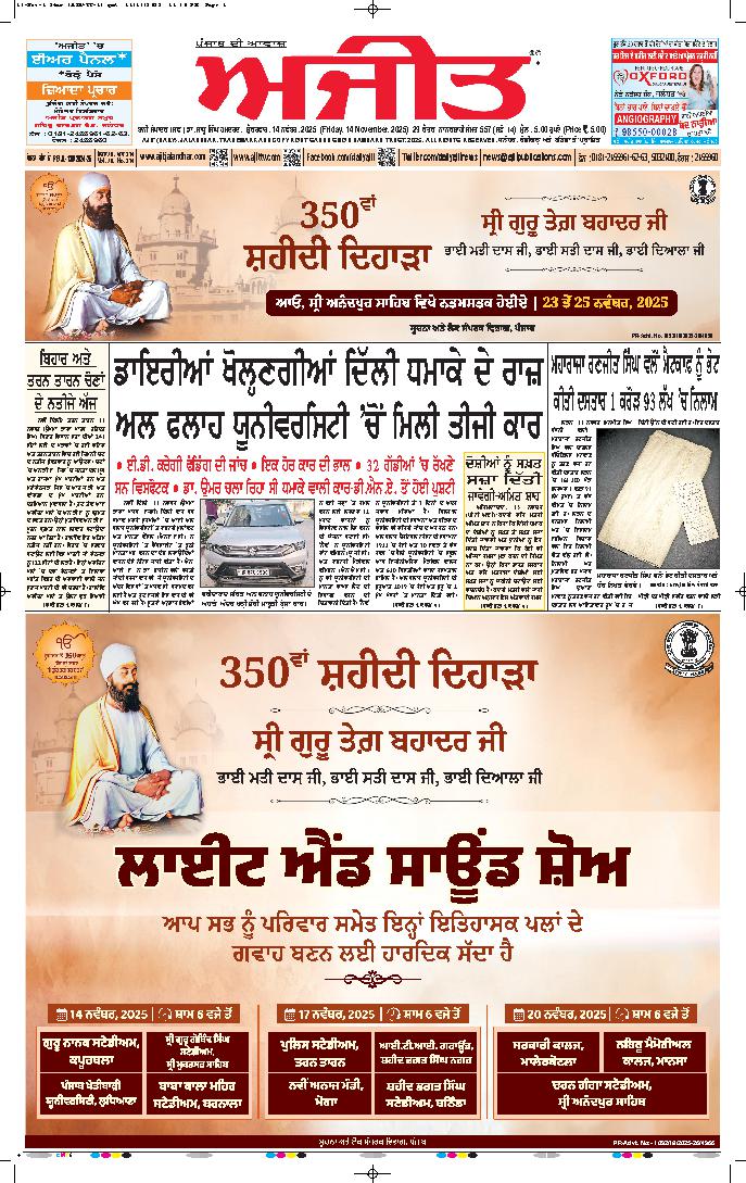 ਅਜੀਤ' ਖ਼ਬਰਾਂ, 13 ਨਵੰਬਰ 2025