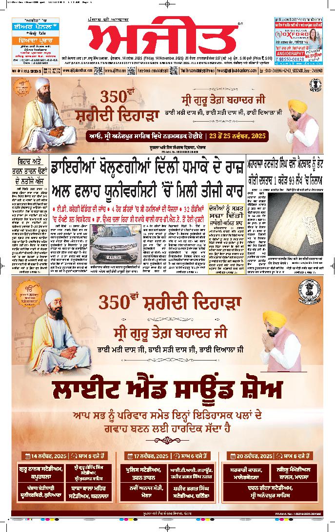 ਅਜੀਤ' ਖ਼ਬਰਾਂ, 13 ਨਵੰਬਰ 2025