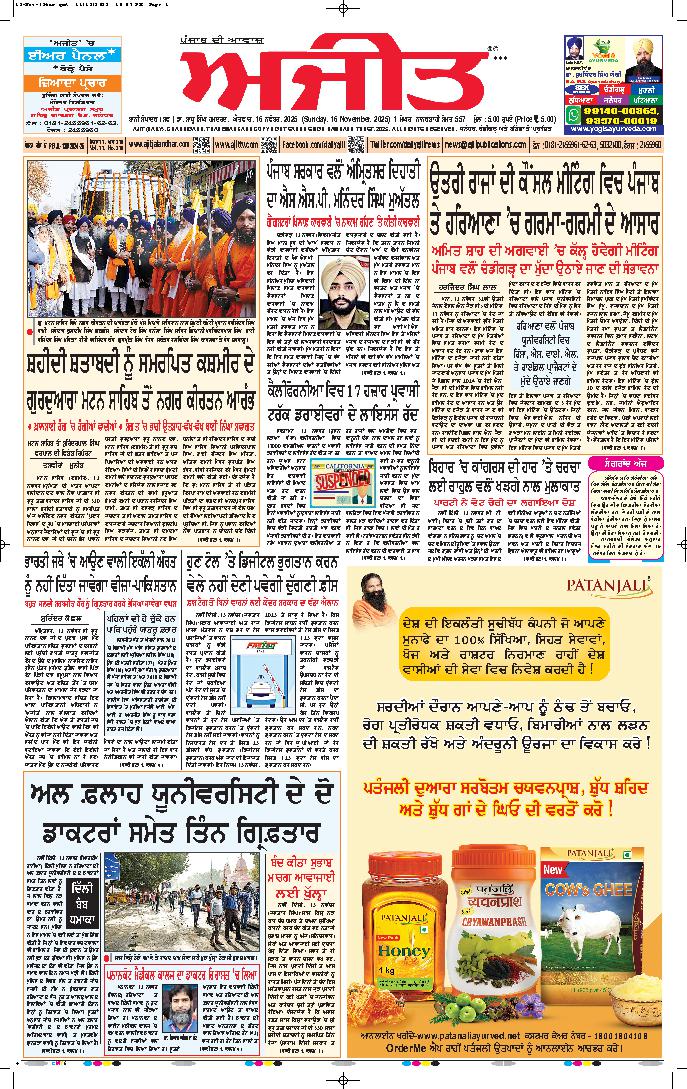 ਅਜੀਤ' ਖ਼ਬਰਾਂ, 15 ਨਵੰਬਰ 2025