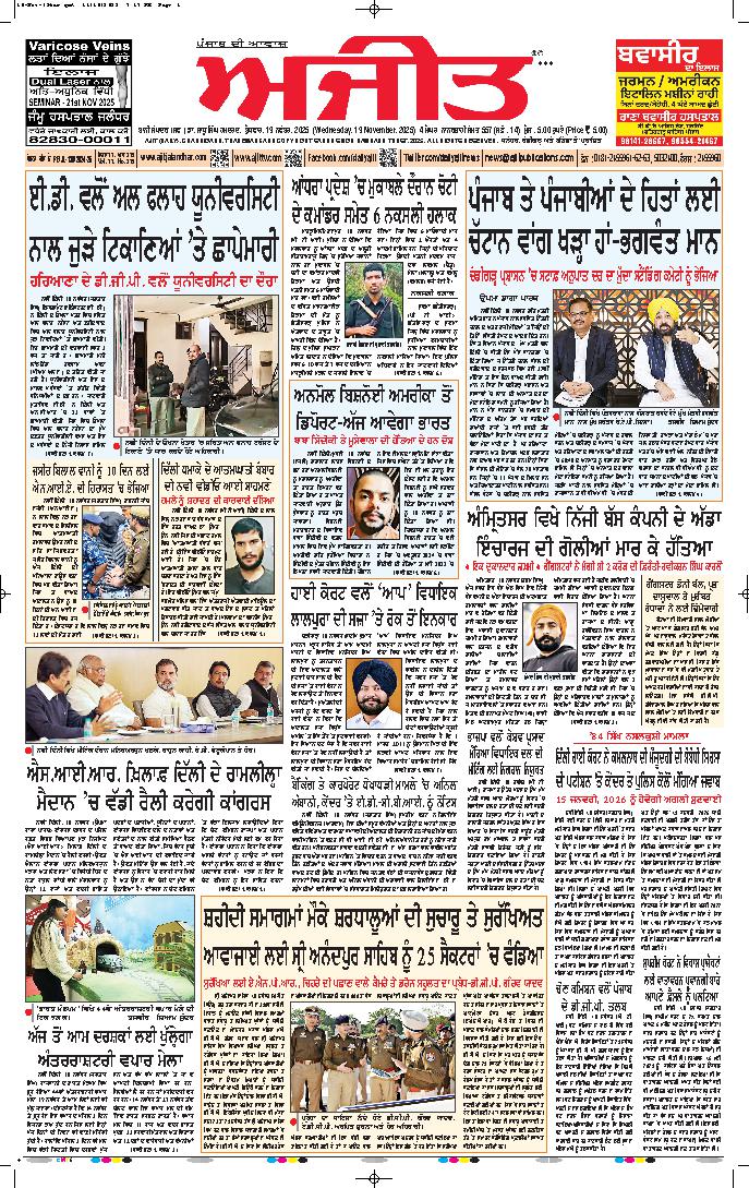 ਅਜੀਤ' ਖ਼ਬਰਾਂ, 18 ਨਵੰਬਰ 2025