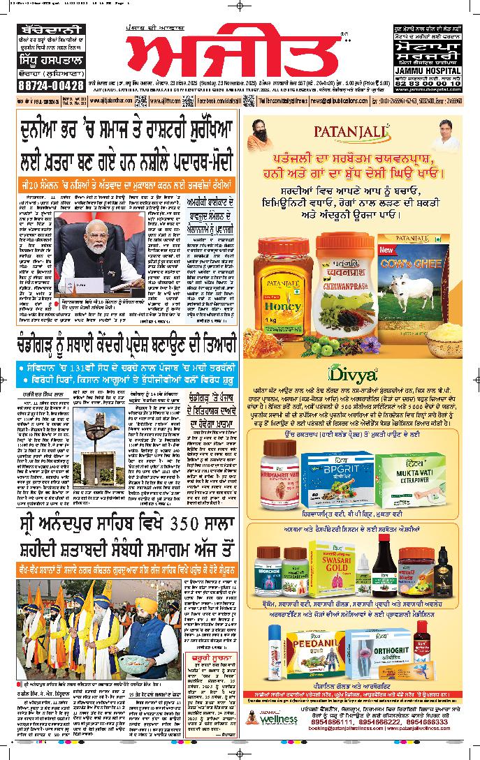 ਅਜੀਤ' ਖ਼ਬਰਾਂ, 22 ਨਵੰਬਰ 2025