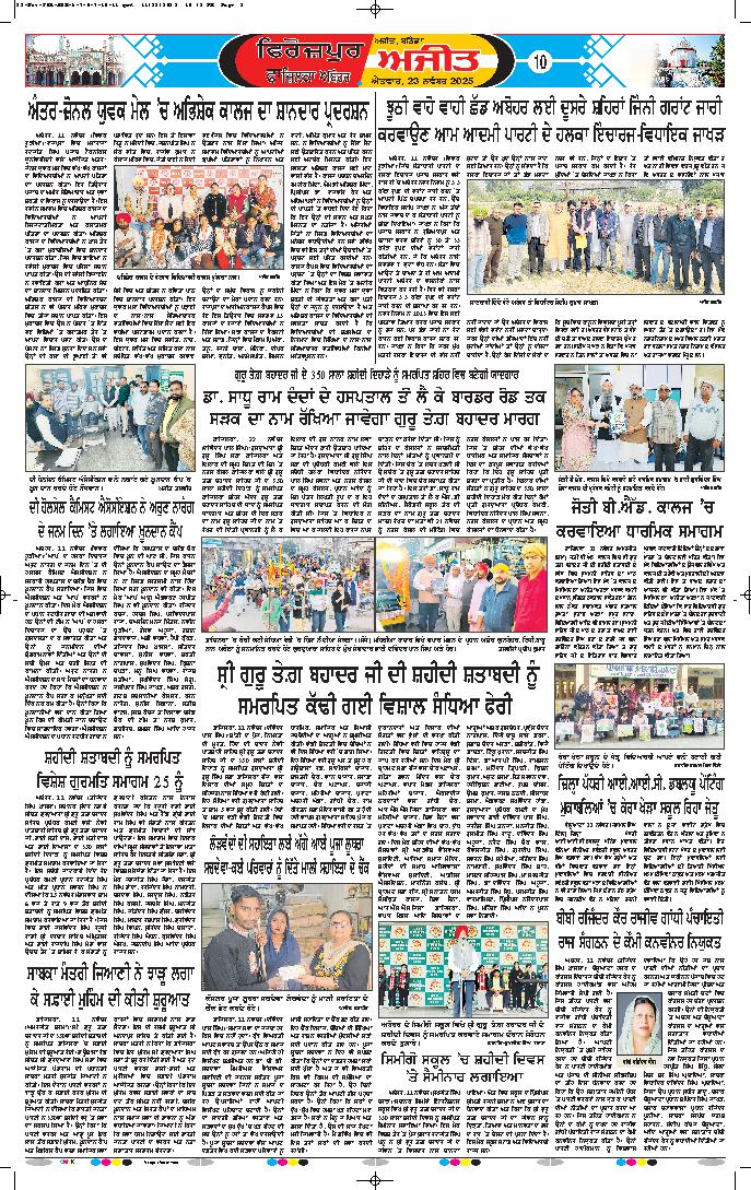ਸ੍ਰੀ ਅਨੰਦਪੁਰ ਸਾਹਿਬ, 23 ਨਵੰਬਰ (ਜੇ.ਐਸ. ਨਿੱਕੂਵਾਲ)- ਗੁਰਦੁਆਰਾ ਗੁਰਿਆਈ ਅਸਥਾਨ, ਪਾਤਸ਼ਾਹੀ ਦਸਵੀਂ, ਗੁਰਦੁਆਰਾ ਗੁਰੂ ਕੇ ਮਹਿਲ, ਭੋਰਾ ਸਾਹਿਬ, ਸ੍ਰੀ ਅਨੰਦਪੁਰ ਸਾਹਿਬ ਵਿਖੇ ਅੱਜ...
