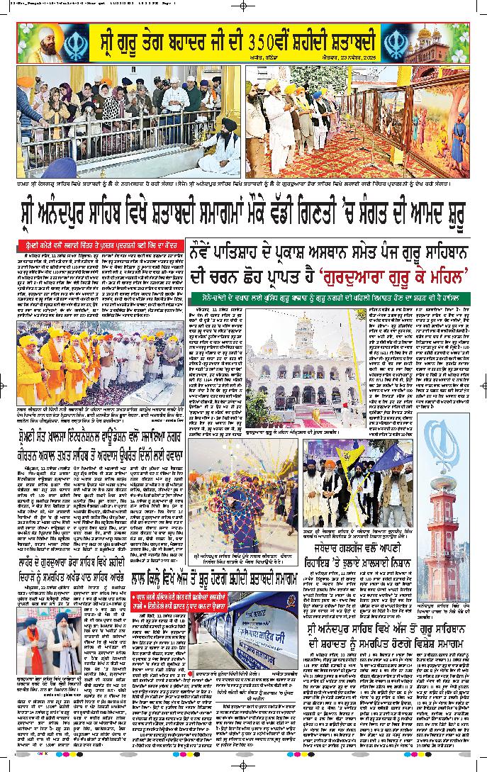ਨਵੀਂ ਦਿੱਲੀ, 22 ਨਵੰਬਰ - ਦਿੱਲੀ ਦੇ ਮੰਤਰੀ ਮਨਜਿੰਦਰ ਸਿੰਘ ਸਿਰਸਾ ਨੇ ਕਿਹਾ, "ਸ੍ਰੀ ਗੁਰੂ ਤੇਗ ਬਹਾਦਰ ਜੀ ਦੇ 350ਵੇਂ ਸ਼ਹੀਦੀ ਪੁਰਬ ਨੂੰ ਸਮਰਪਿਤ ਪ੍ਰੋਗਰਾਮ, ਜੋ ਕਿ ਕੱਲ੍ਹ ਤੋਂ ਲਾਲ ਕਿਲ੍ਹਾ ਕੰਪਲੈਕਸ ਵਿਚ ਦਿੱਲੀ ਸਰਕਾਰ ਵਲੋਂ