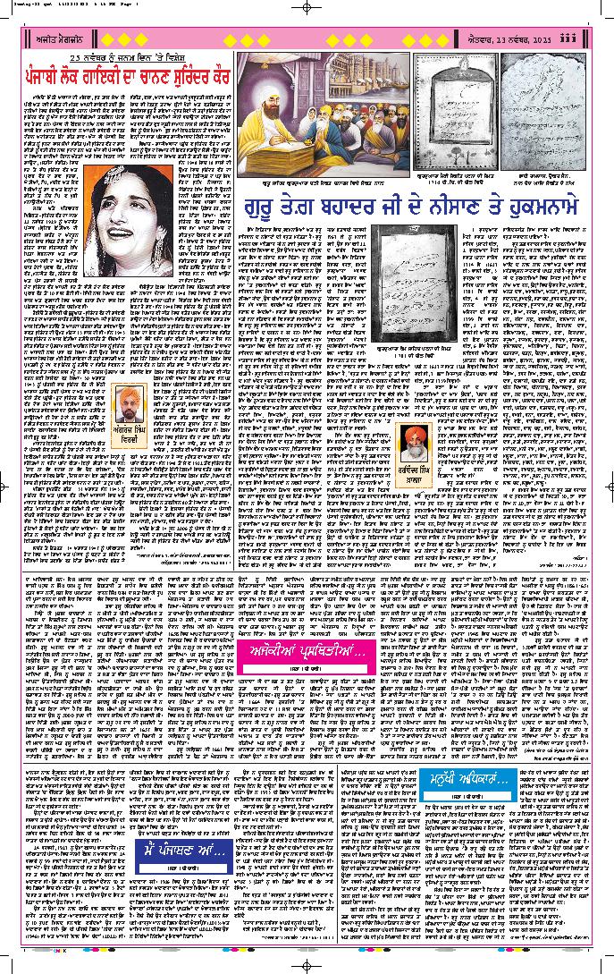 ਸ੍ਰੀ ਅਨੰਦਪੁਰ ਸਾਹਿਬ, 23 ਨਵੰਬਰ (ਜੇ.ਐਸ. ਨਿੱਕੂਵਾਲ)- ਗੁਰਦੁਆਰਾ ਗੁਰਿਆਈ ਅਸਥਾਨ, ਪਾਤਸ਼ਾਹੀ ਦਸਵੀਂ, ਗੁਰਦੁਆਰਾ ਗੁਰੂ ਕੇ ਮਹਿਲ, ਭੋਰਾ ਸਾਹਿਬ, ਸ੍ਰੀ ਅਨੰਦਪੁਰ ਸਾਹਿਬ ਵਿਖੇ ਅੱਜ...