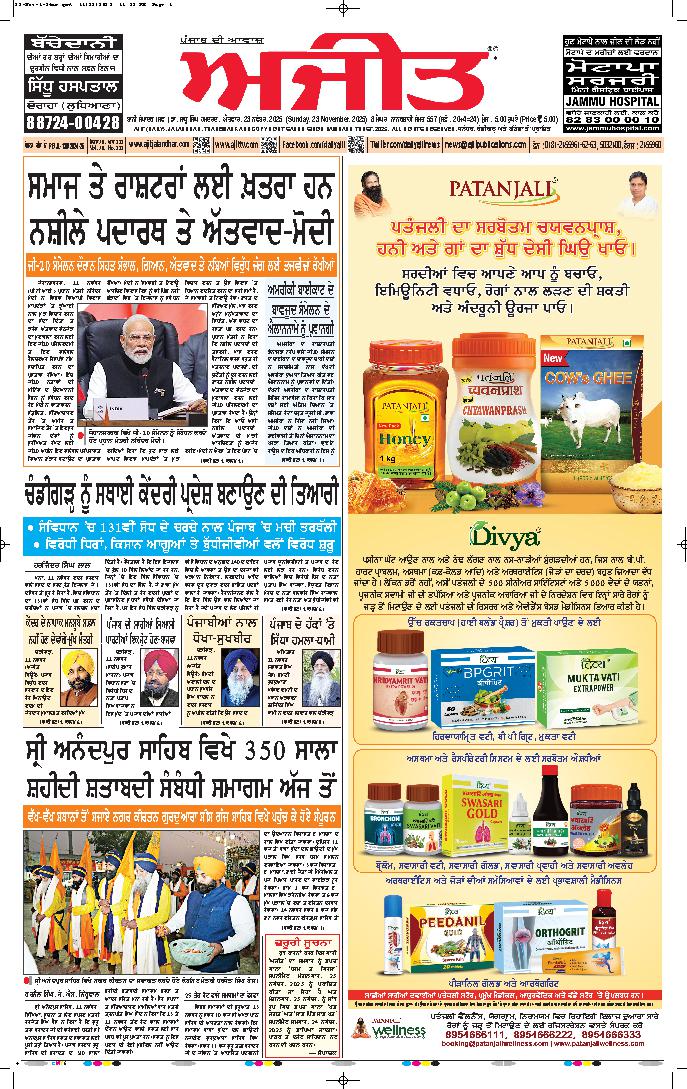 ਅਜੀਤ' ਖ਼ਬਰਾਂ, 22 ਨਵੰਬਰ 2025