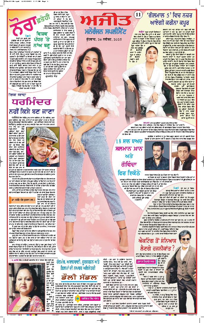 ਅਜੀਤ' ਖ਼ਬਰਾਂ, 25 ਨਵੰਬਰ 2025