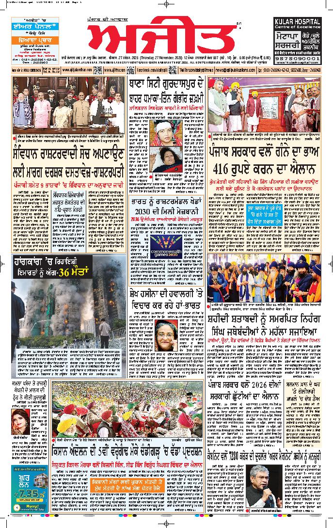 ਅਜੀਤ' ਖ਼ਬਰਾਂ, 26 ਨਵੰਬਰ 2025