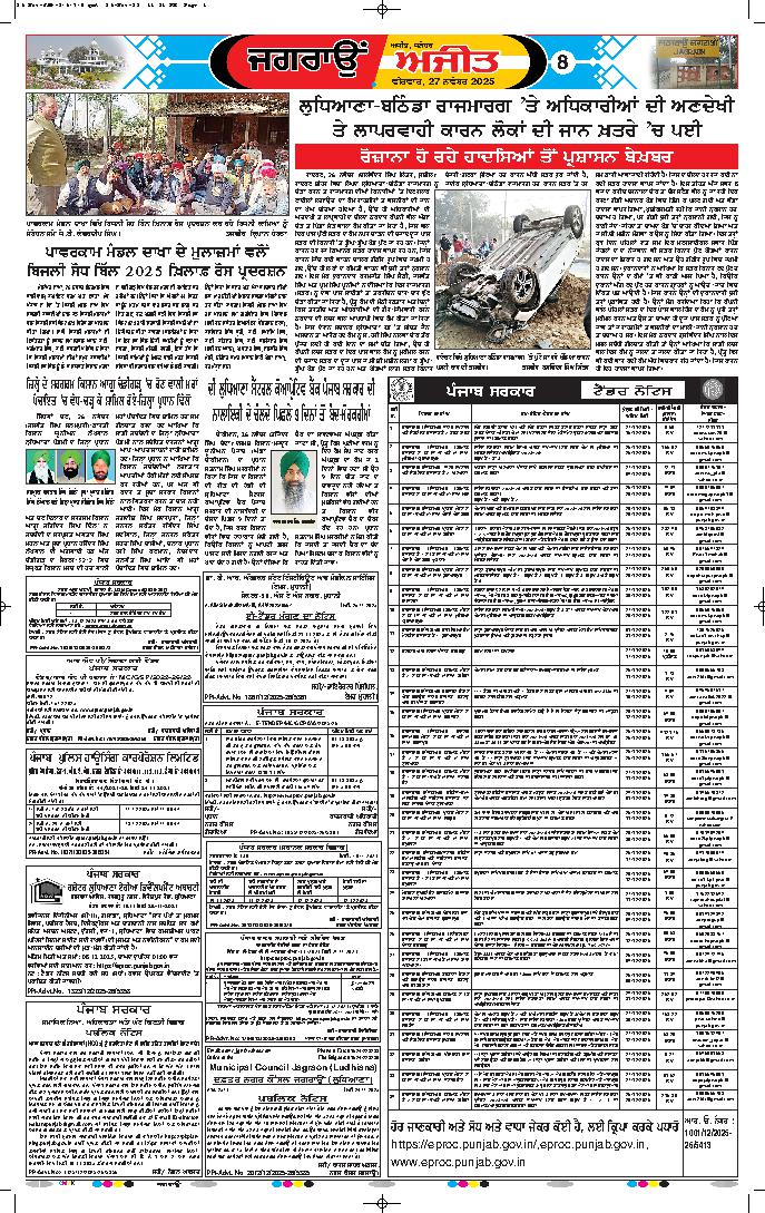 ਜਲੰਧਰ, 27 ਨਵੰਬਰ- ਸ੍ਰੀ ਅਕਾਲ ਤਖ਼ਤ ਸਾਹਿਬ ਦੇ ਕਾਰਜਕਾਰੀ ਜਥੇਦਾਰ ਅਤੇ ਤਖ਼ਤ ਸ੍ਰੀ ਕੇਸਗੜ੍ਹ ਸਾਹਿਬ ਦੇ ਜਥੇਦਾਰ ਸਿੰਘ ਸਾਹਿਬ ਗਿਆਨੀ ਕੁਲਦੀਪ ਸਿੰਘ ਗੜਗੱਜ ਨੇ ਅੱਜ ਬੀਤੇ ਦਿਨੀਂ ਜਲੰਧਰ...