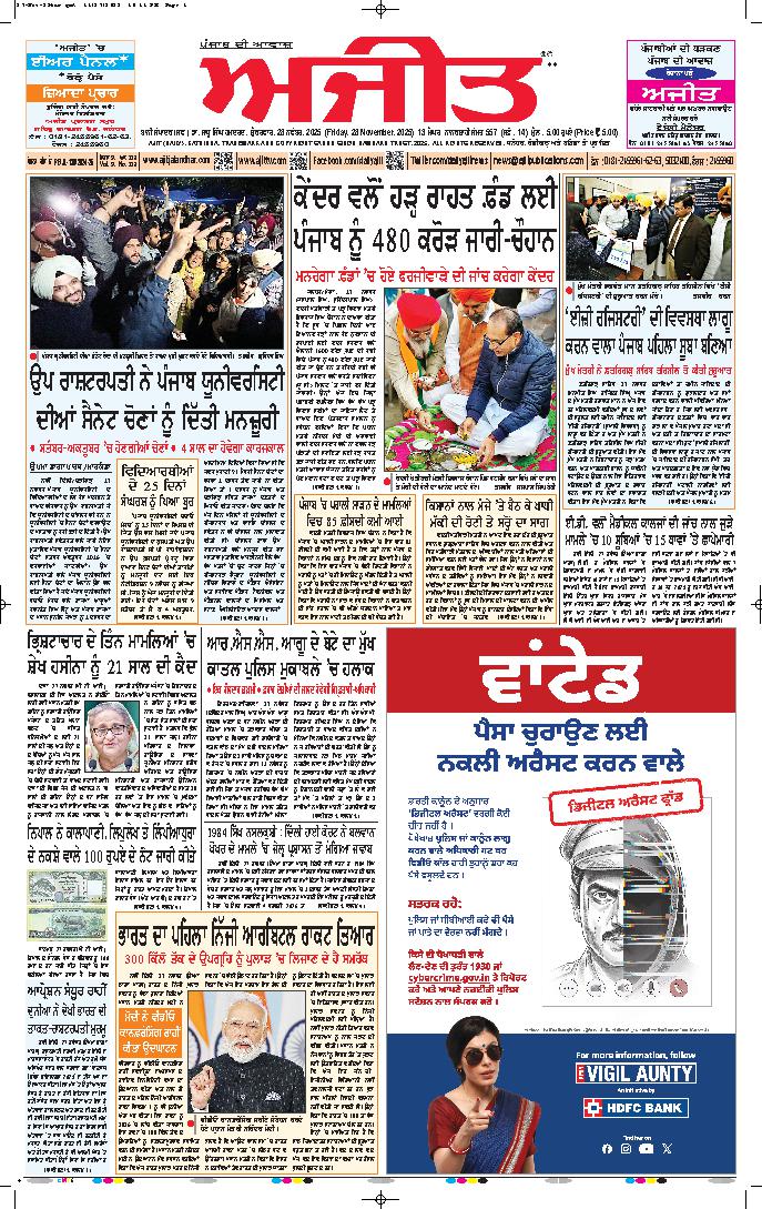 ਅਜੀਤ' ਖ਼ਬਰਾਂ, 27 ਨਵੰਬਰ 2025