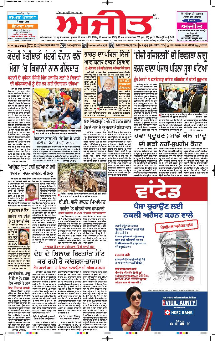 ਅਜੀਤ' ਖ਼ਬਰਾਂ, 27 ਨਵੰਬਰ 2025