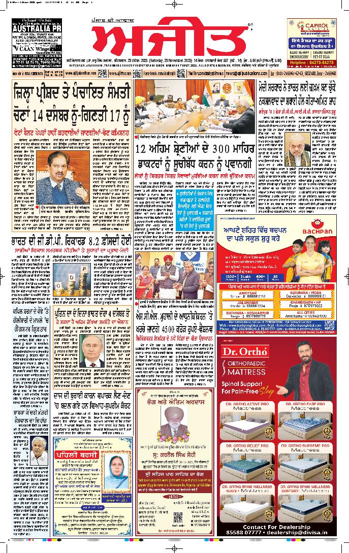 ਅਜੀਤ' ਖ਼ਬਰਾਂ, 28 ਨਵੰਬਰ 2025