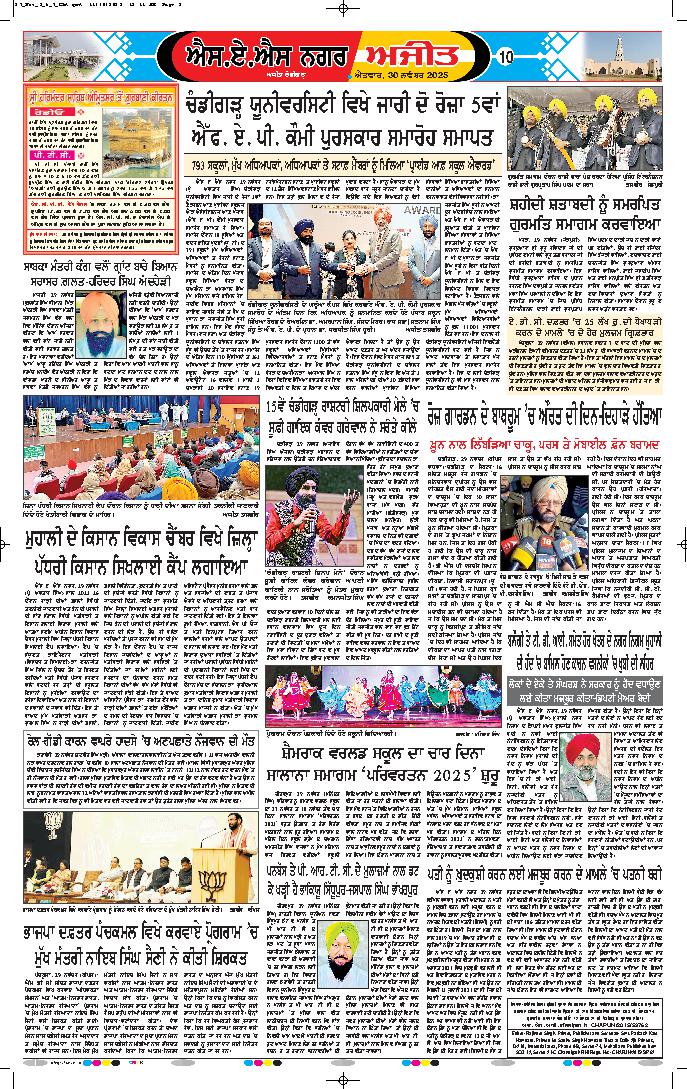 ਚੰਡੀਗੜ੍ਹ /ਸਾਹਿਬਜ਼ਾਦਾ ਅਜੀਤ ਸਿੰਘ ਨਗਰ