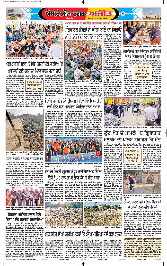 ਚੰਡੀਗੜ੍ਹ /ਸਾਹਿਬਜ਼ਾਦਾ ਅਜੀਤ ਸਿੰਘ ਨਗਰ