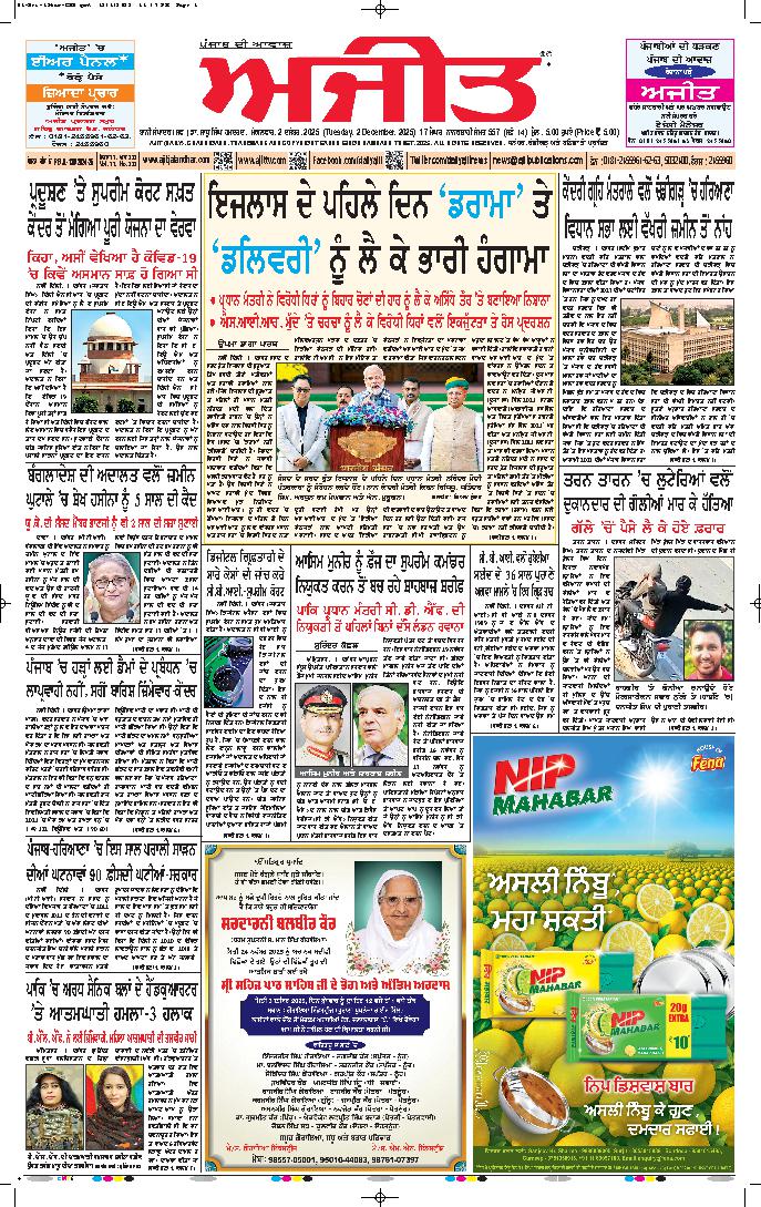 ਅਜੀਤ' ਖ਼ਬਰਾਂ, 01 ਦਸੰਬਰ 2025