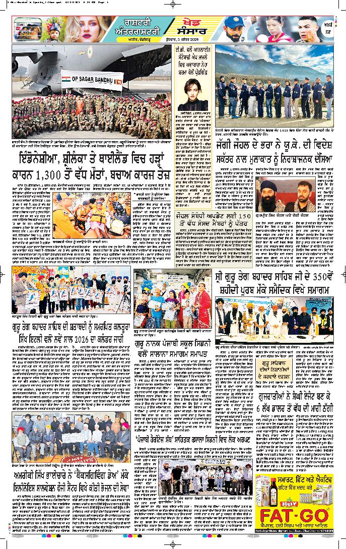 ਨਵੀਂ ਦਿੱਲੀ, 3 ਦਸੰਬਰ- ਸੰਸਦ ਦੇ ਸਰਦ ਰੁੱਤ ਇਜਲਾਸ ਦਾ ਤੀਜਾ ਦਿਨ ਹੈ। ਪਹਿਲੇ ਦਿਨ ਵਿਰੋਧੀ ਧਿਰ ਨੇ ਐਸ.ਆਈ.ਆਰ. ਦੇ ਮੁੱਦੇ ਅਤੇ ਵੋਟ ਚੋਰੀ ਦੇ ਦੋਸ਼ਾਂ ਨੂੰ ਲੈ ਕੇ ਦੋਵਾਂ ਸਦਨਾਂ ਵਿਚ ਹੰਗਾਮਾ....